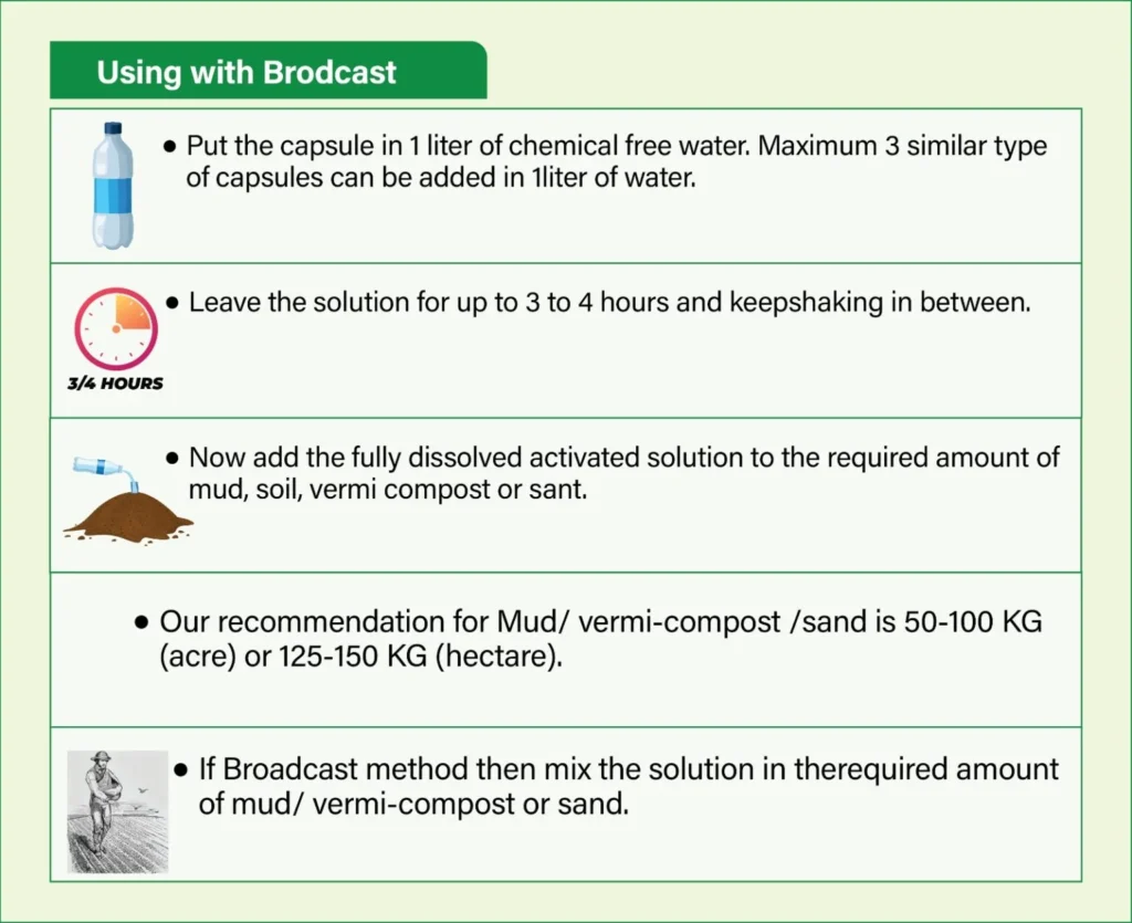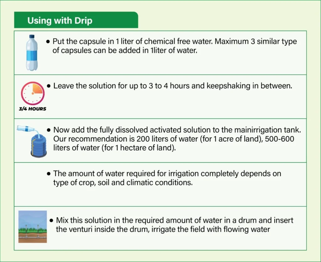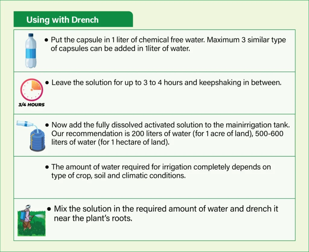 Siesto Green biocapsules provide an easy and versatile solution for enriching soil with beneficial microbes. Their water-soluble formulation enables seamless application through different irrigation systems, while direct soil incorporation offers added flexibility. This user-friendly approach makes Siesto Green biocapsules an essential tool for fostering healthy and robust plant growth.